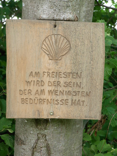 (27.5.) ...bin seit ein paar Std im Kloster Einsiedel allein in einem 6 Bettzimmer und erste DVD und Schlüsselbund nach Hause geschickt. Nach Hotel Jakob und Kloster dürfte morgen Hotel Freiluft auf dem Programm haben...